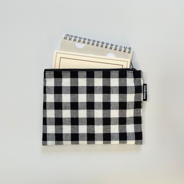 half linen bunkobon pouch (black check)