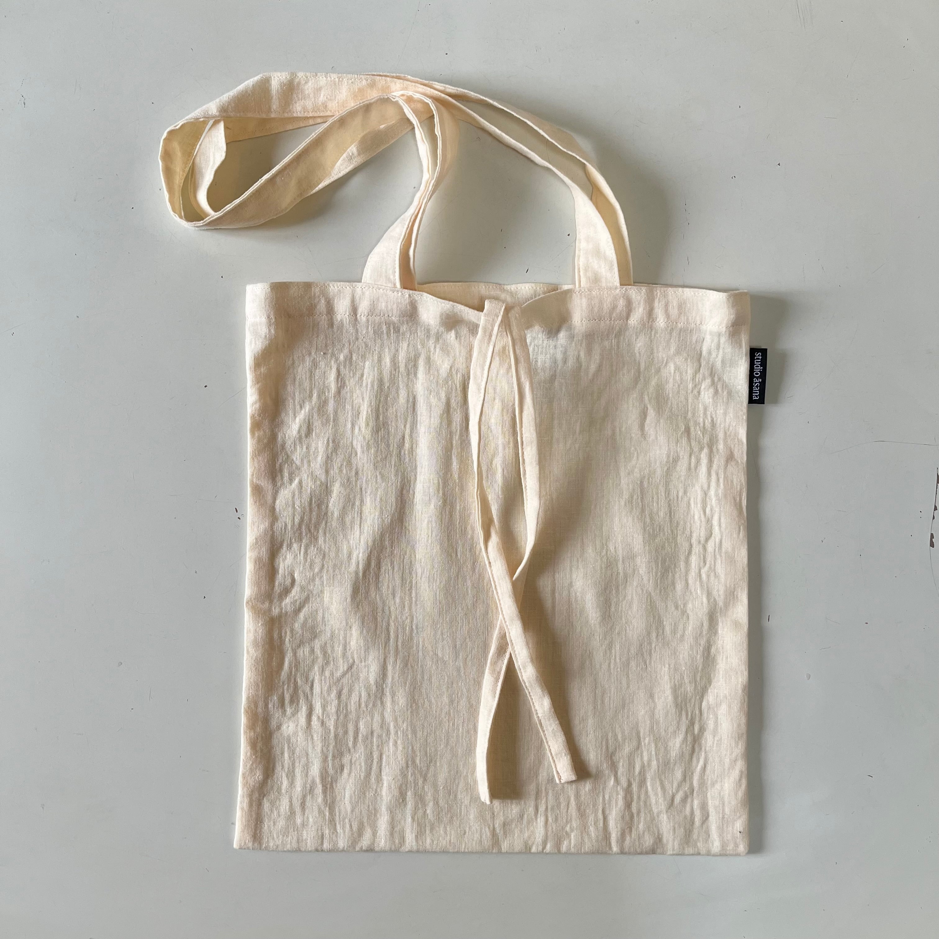 トートバッグ サブバッグ 2個持ち A4 洗える 畳める ハーフリネン コットンリネン リボン 無地 コンパクト シンプル 大人かわいい カジュアル 韓国 プチギフト プレゼント 新生活 studio asana