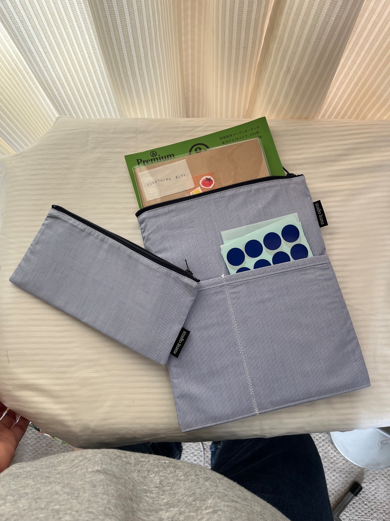 ペンケース 筆箱 文房具 マスキングテープ 付箋 手帳デコ ファスナーポーチ コンパクト シンプル ストライプ 大人かわいい カジュアル 韓国 プチギフト プレゼント 新生活 studio asana